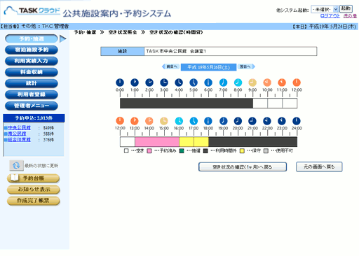 空き状況を確認する場合は、[空き状況照会]ボタンをクリックします。 |