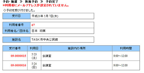 | 1. | 申込内容確認画面で[予約する]ボタンをクリックすると、当画面が表示されます。 | |