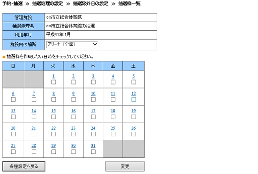 抽選枠を作成しない時間にチェックをいれて、[変更]ボタンをクリックしてください。 |