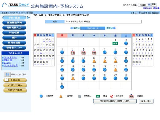 | 2. | 各利用日の空き状況は、欄外の凡例を参考に確認してください。 | |