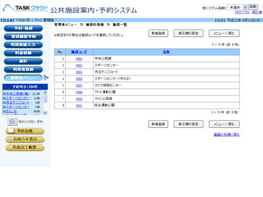 | 1. | 管理者メニュー[施設の登録]ボタンをクリックすると、当画面が表示されます。 | |